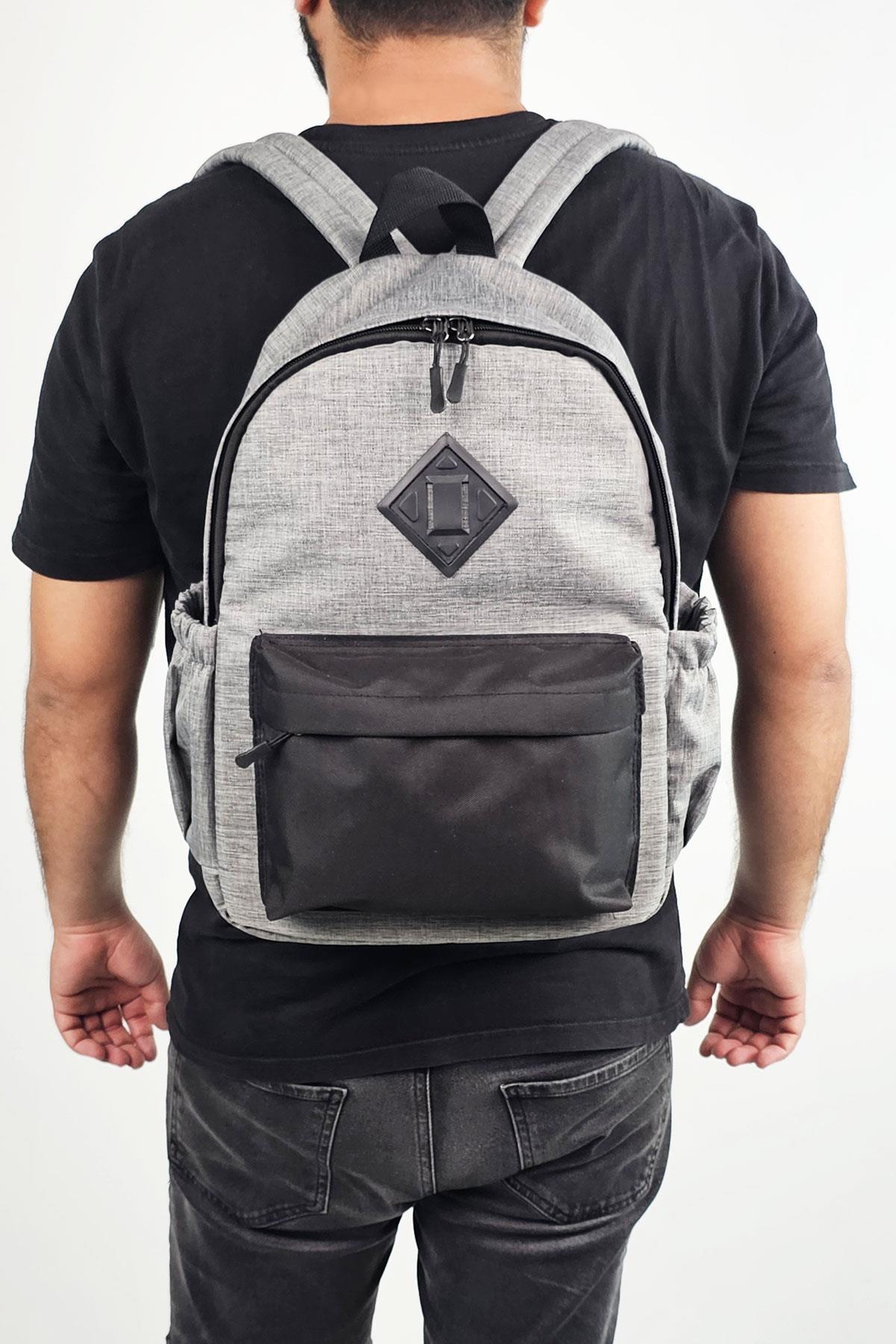 Gri Renk Sırt Çantası Spor Çantası - Gri Okul Çantası Günlük Kullanım Çanta